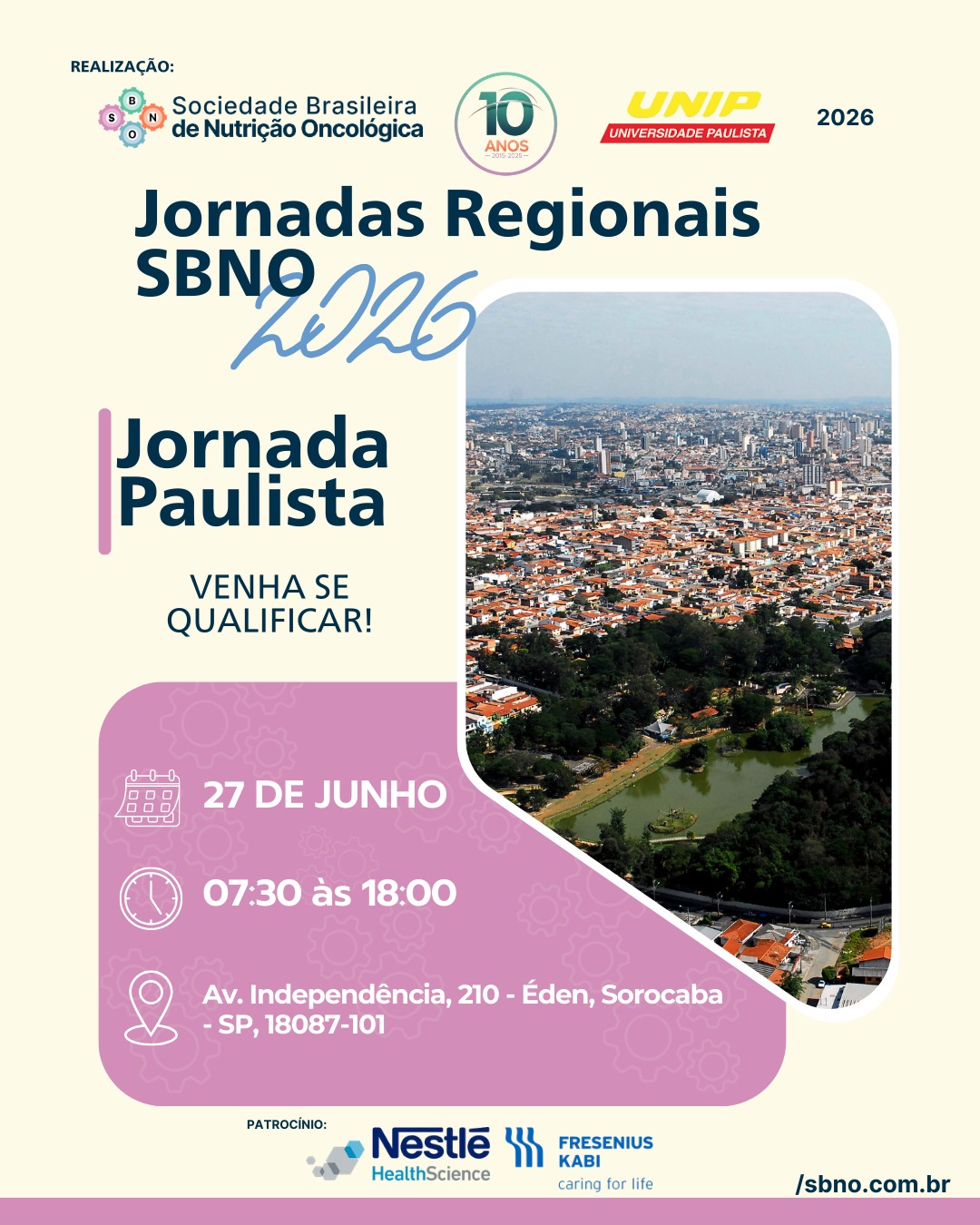 27 de junho de 2026 -JORNADA PAULISTA DE NUTRIÇÃO ONCOLÓGICA SBNO / UNIP